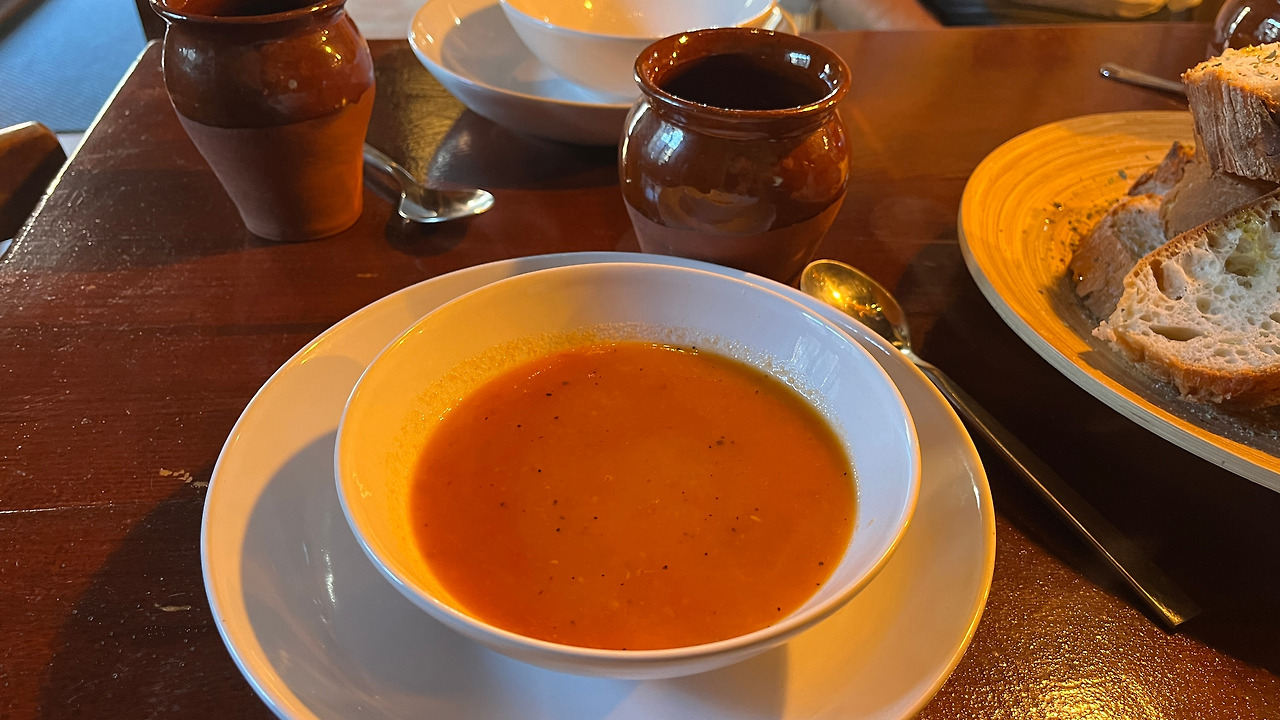 저녁식사는 채식이었다. 제대로 된 채식을 먹어본 적이 있는지 기억이 잘 나지 않아서 너무나 흥미롭게 저녁 시간을 기다렸다. 빵과 함께 나온 올리브유, 후추, 소금은 기본적인 것들임에도 심상치 않았다. 도르륵 돌아가는 소금통은 생전 처음 보는 고급스러움을 가지고 있었다. 스타터로 나온 토마토 수프는 생토마토를 안 먹는 나도 한 그릇 뚝딱 비울 정도로 맛있었다. 물론 이스라엘, 프랑스에서 온 사람들과 대화를 나누느라 아주 느리게 먹었지만 충분히 인상적이었다.