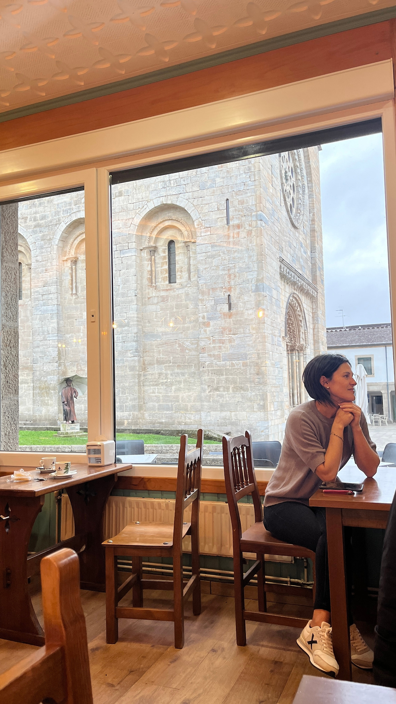 알베르게에서 순례자들 중 가장 마지막으로 건물을 나섰다. 한두 시간 남짓 거리의 작은 마을에 12시까지만 도착하면 되는 일정이었기에 마저 길을 나서지 않고 근처 카페를 찾았다. 대성당 바로 앞 테라스 자리에 앉아 발가락에 붙인 밴드를 고쳐 붙이고 여유롭게 커피의 따뜻함을 즐겨보았다. 얼죽테(라스)를 추구하던 열정도 9월이 들어서자 시들해졌는지 금방 몸이 차가워져 자리를 안으로 옮겼다. 순례자들은 모두 길을 떠나고, 동네 주민들이 삼삼오오 모여 커피를 마시는 아침의 일상은 참으로 평화로웠다. 그 속에서 조용히 블루투스 키보드를 꺼내어 글을 쓰며 시간을 보냈다. 반복되는 일상 속에 조금은 새로운 하루의 시작이 나쁘지 않았다.
