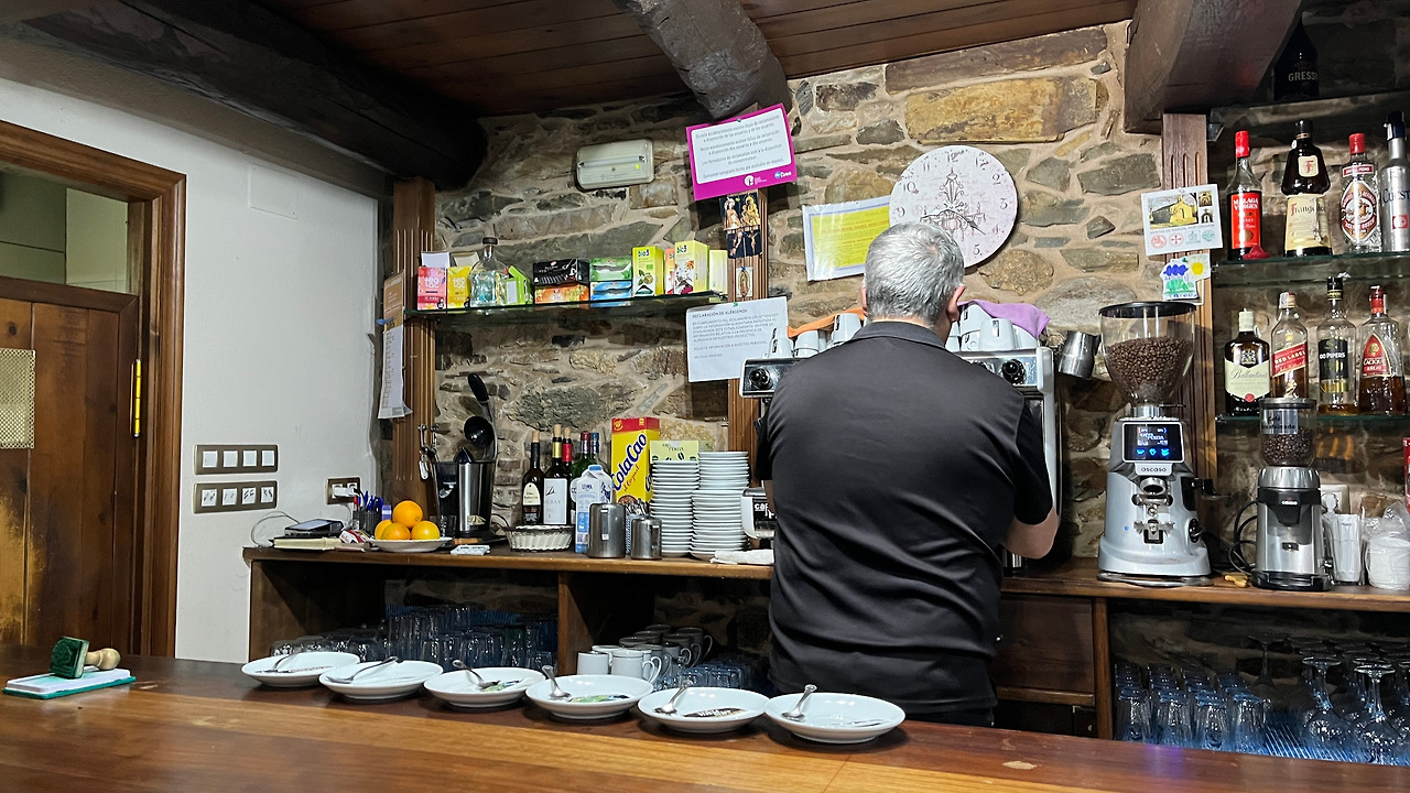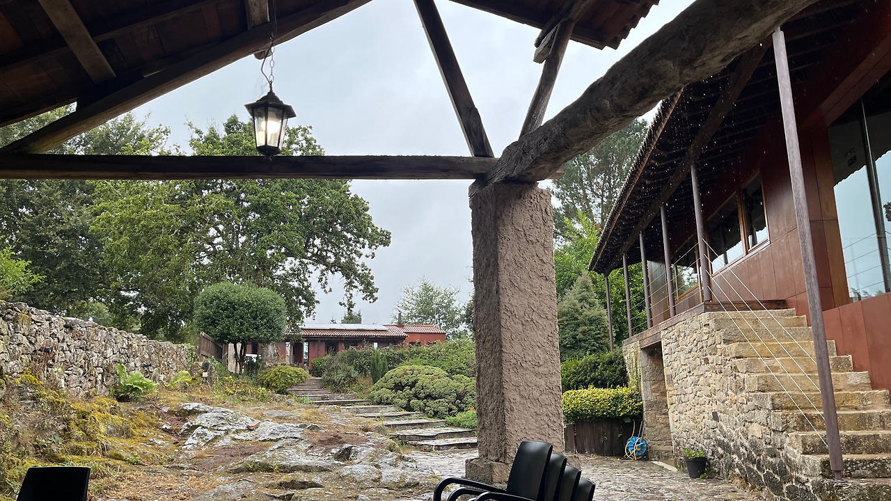 길을 걷다가 운치 있는 알베르게를 발견했다. 오늘의 목적지는 아직 조금 더 남았기에 적당히 음료를 한잔 마시면 좋겠다는 바람으로 바에 들어갔다. 사진에도 찍히는 굵은 빗방울이 처마에 부딪혀 떨어지며 추적추적 소리를 내었다. 바에서 보이는 알베르게의 정갈한 창문과 마당이 참 마음에 들어서, 언젠가 이런 집을 가질 수 있게 된다면 좋겠다는 생각 따위를 하며 잠시 시간을 보냈다.