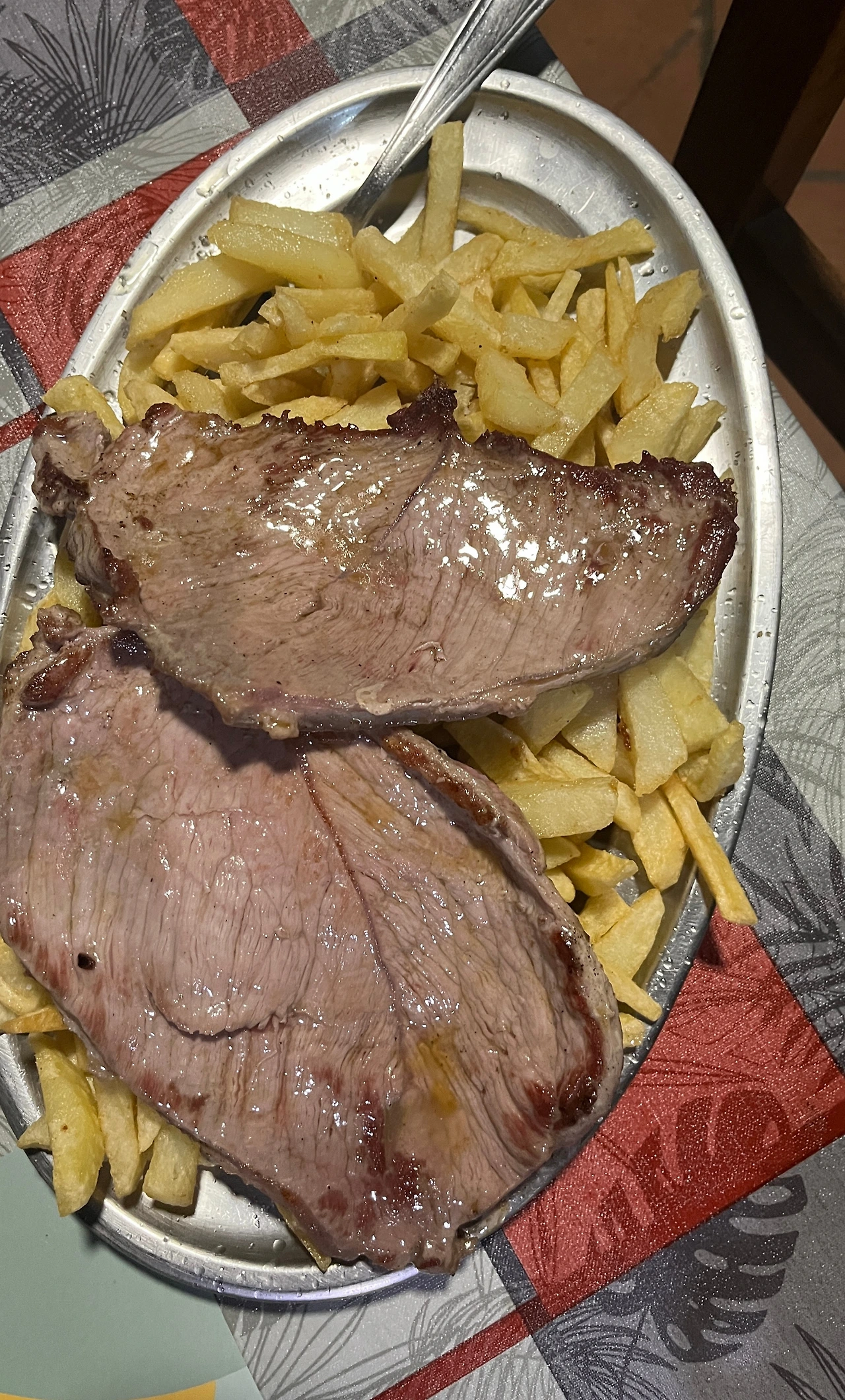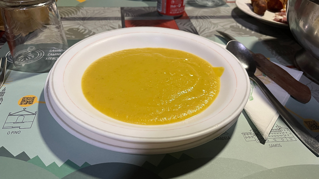 내내 얼어있던 몸을 욕조에 담그고 나니 세상모르게 낮잠에 들었다. 주인에게 말해둔 저녁 시간이 한참 지나서야 잠에서 깨어 부리나케 식당 층으로 내려갔다. 음식을 내어주는 사장님은 10살이 채 안된 것 같은 아이를 키우고 있었다. 이 시골에서 이런 젊은 가족이 살 수 있다니, 순례길에서는 자주 목격하는 내내 놀라운 풍경이다. 풍족한 양의 저녁식사를 하며 내부의 물건들을 둘러보았다. 브라운관이라고 부를 만한 TV와 세월이 느껴지는 사진들이 가득했다. 이곳에 터를 잡고 삶을 살아가는 사람들의 흔적이 느껴지는 공간이었다.