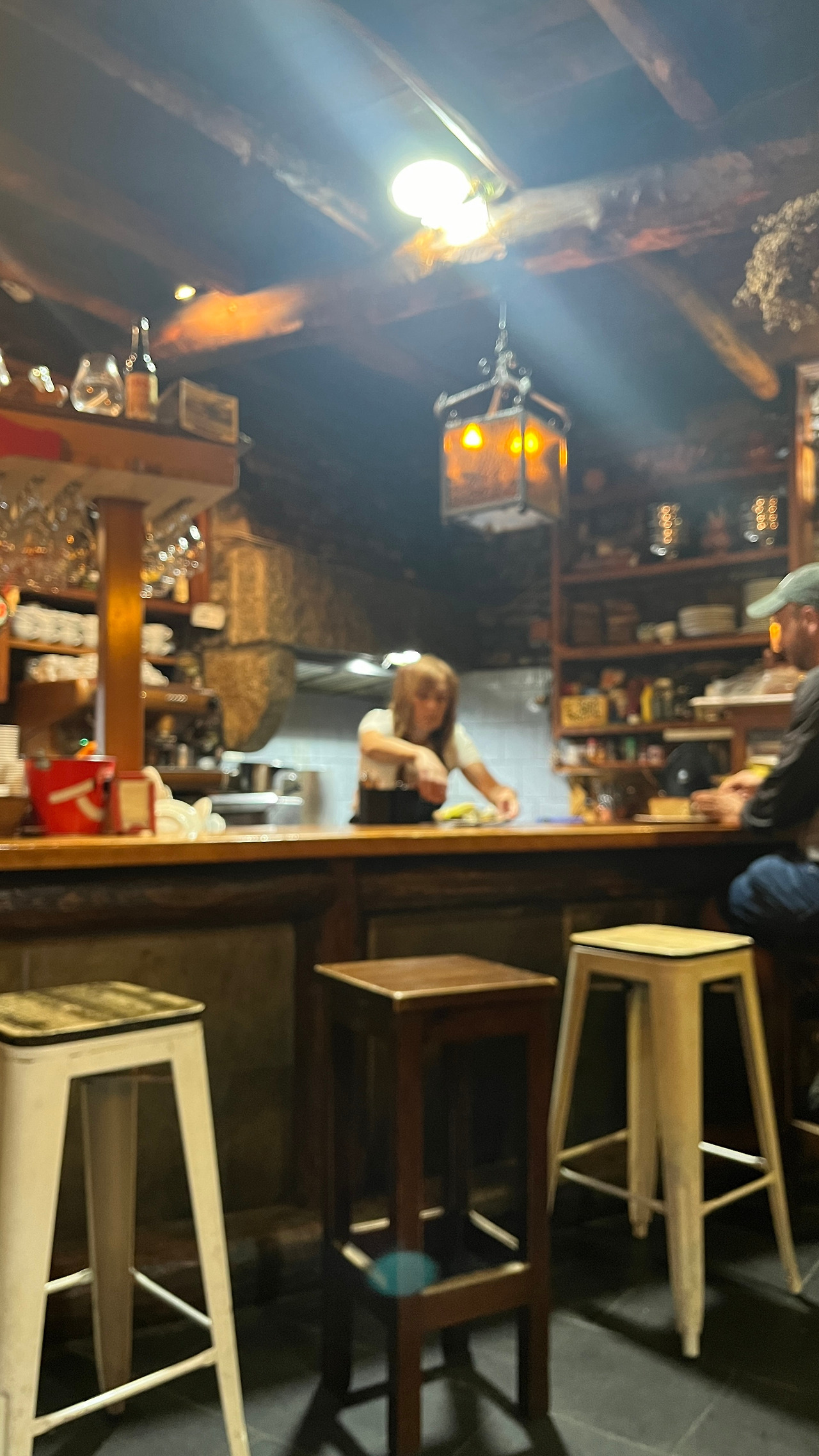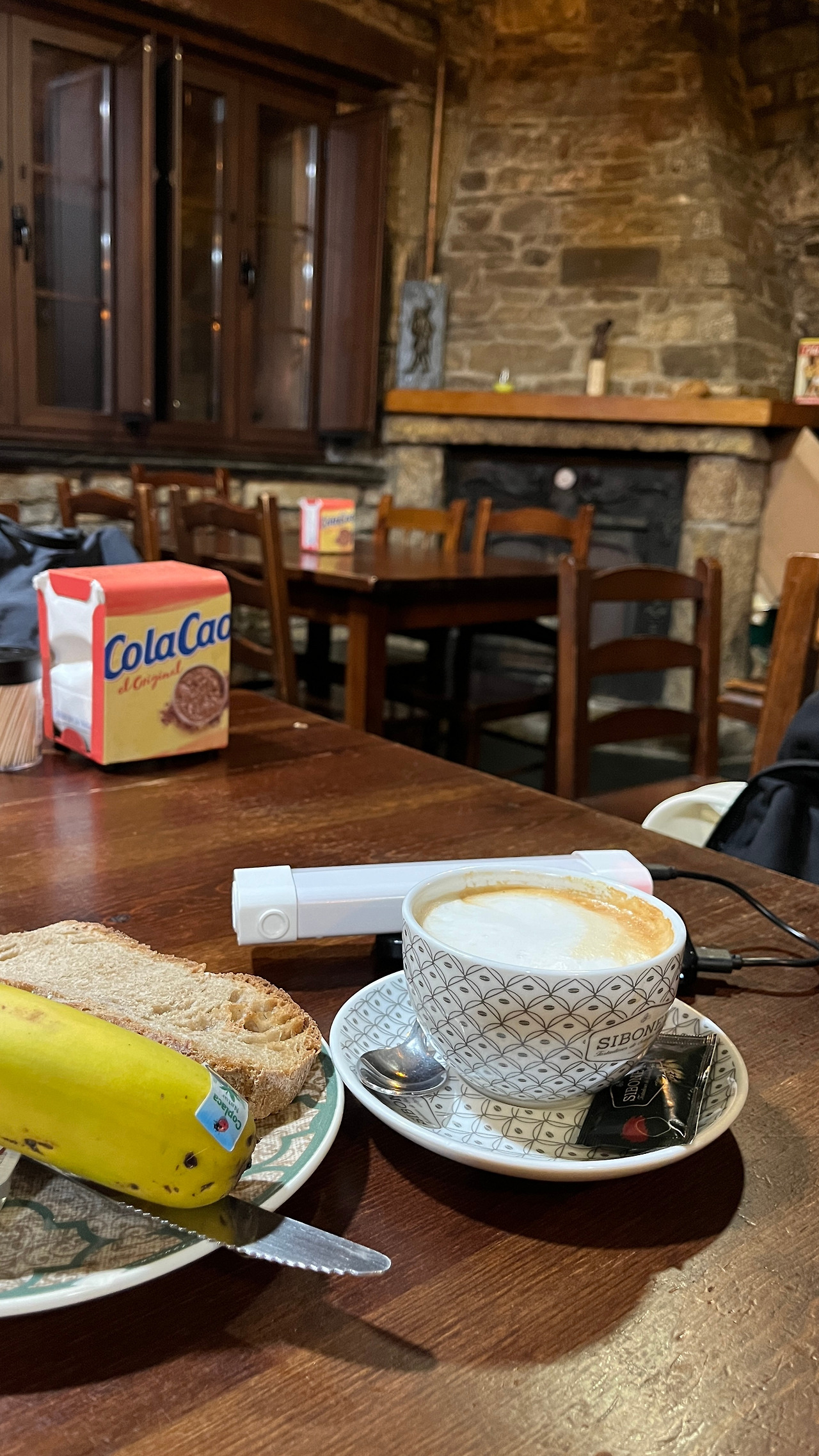 아무리 걸어도 안개는 걷힐 기미가 보이지 않았고, 앞이 보이지 않던 산길을 겨우 벗어난 김에 눈 앞에 보이는 바에 바로 들어갔다. 주로 아침은 출발하기 전에 먹거나, 걸으며 간단히 해결하곤 했었기에 어딘가에 앉아서 아침을 먹는 것은 처음 있는 일이었다. 그만큼 날이 많이 추웠고, 따뜻한 불빛이 들여다보이는 바는 정말 아늑해 보였다.
