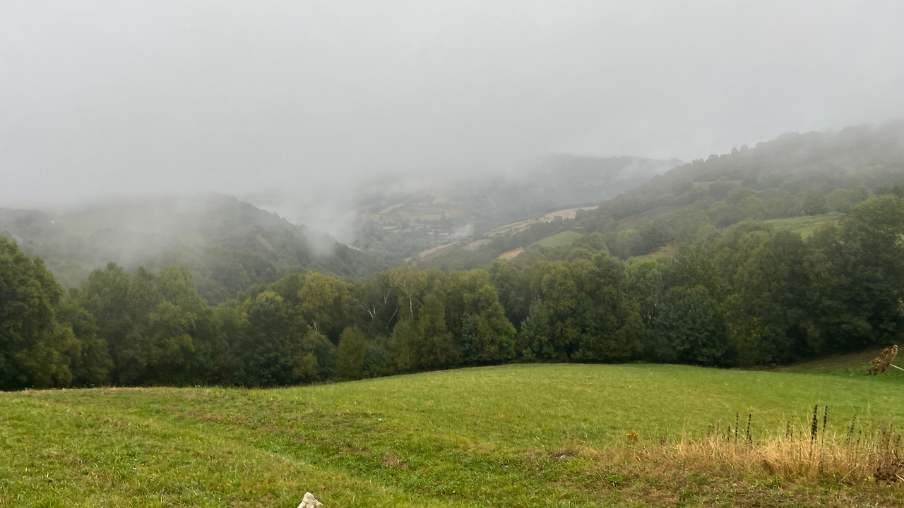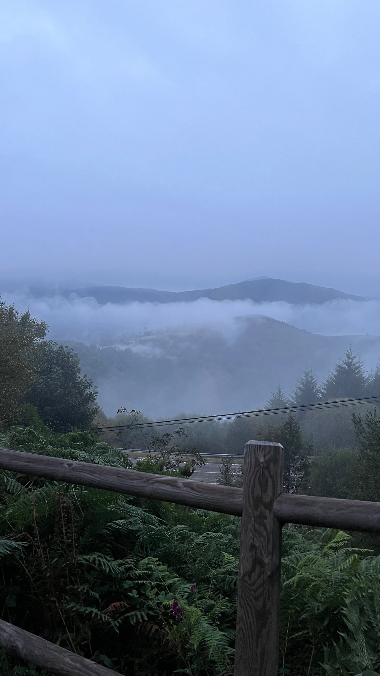 날이 유독 궂은 아침이었다. 마을을 벗어나 바로 시작된 산길은 온통 안개 속이었고, 금방이라도 비를 뿌릴 것 같던 하늘은 정말 머지않아 비를 뿌렸다. 가방에서 판초우의를 꺼내 입었다. 북쪽길에 비가 자주 온다는 말에 데카트론에서 부리나케 산 판초우의가 프랑스길에서도 요긴하게 쓰이다니, 무려 300g이 넘는 그것을 내내 들고 다닌 보람이 크게 다가왔다.
