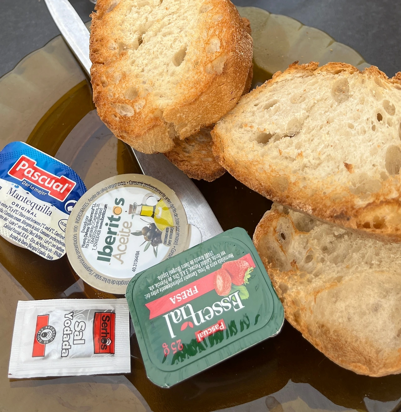 카페 콘레체는 충분히 따뜻하고 적당히 밍밍했다. 이 맛은 도저히 적응이 되지 않지만 이제는 순례길의 트레이드 마크가 된 것 같다. 유독 바삭하고 맛있는 바케트를 올리브유와 함께 먹고 기분이 참 좋았다. 충분히 바삭하고 적당히 쫀득한 그 식감에 감탄해 가며 보낸 시간이었다. 아침을 다 먹은 뒤, 바게트의 출처까지 알아내어 도매만 하는 것 같아 보이는 빠나테이라에서 커다란 바게트 하나를 더 사고야 말았다. 순례길 중 많은 기억들이 내게 정말 행복한 순간으로 남았지만, 이 날 이 바게트를 사던 그 순간 내 머릿속 기억된 장면들은 참 잊지 못하게 기쁜 한 컷이다.