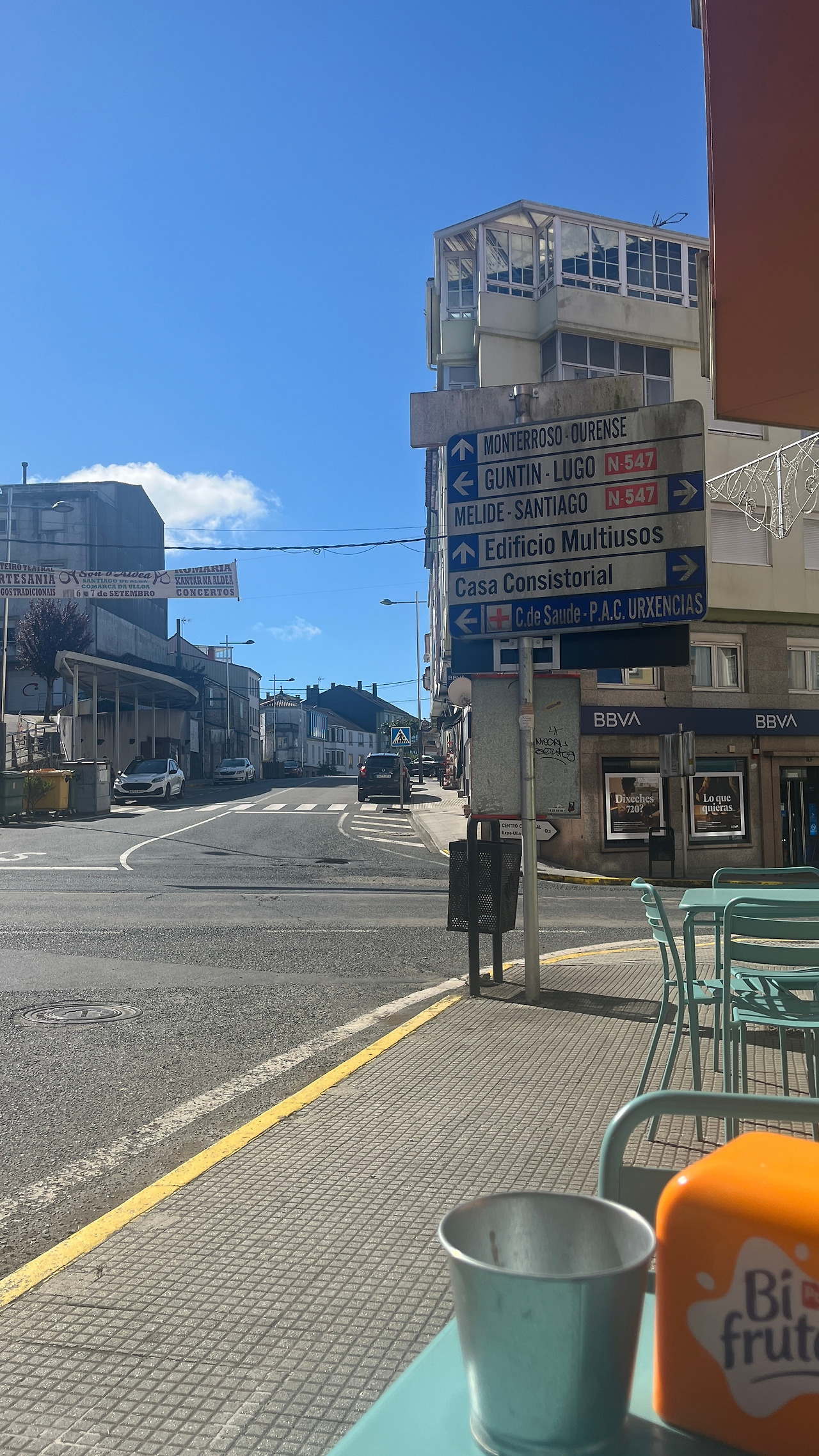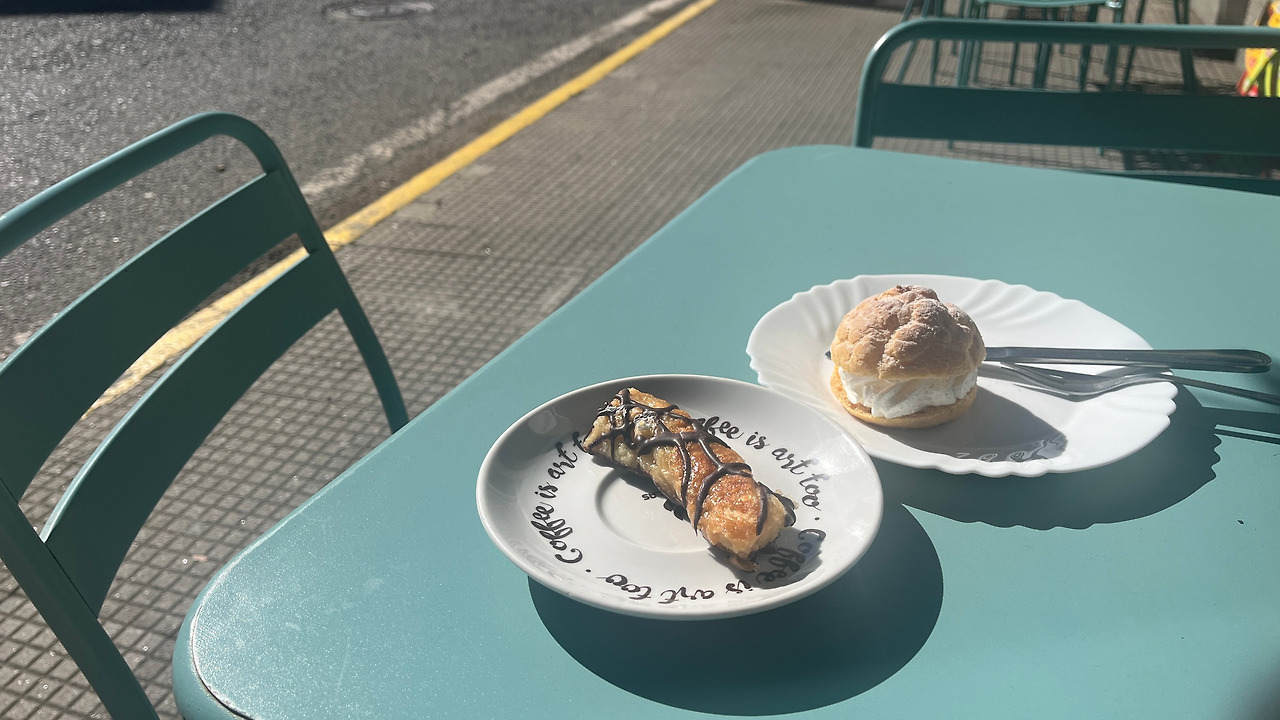 갑자기 이틀이 흘렀다. 슈퍼에서 태평양 조개를 발견하고 반갑게 탕을 끓여 먹은 그날 밤, 원인 모를 복통에 시달리며 뜬눈으로 밤을 지새웠고, 도저히 걸을 수 없는 컨디션이었기에 연박에 연박을 해가며 가만히 누워 이틀을 보냈다. 친절한 알베르게 주인은 아마 수돗물 때문일 거라고 말했지만, 이미 1달 넘게 수돗물을 마셔왔던 터라 갑작스러운 복통은 조개로 밖에 설명되지 않을 것 같았다. 가방에 고이 모셔온 소염진통제를 몇 알 먹으며 자다 일어나길 반복했다. 어쩌면 배탈이난 것 이외에도 한 달 내내 이어진 일정으로 지친 몸이 쉬어갈 타이밍을 정해버린 걸지도 모르겠다는 생각도 들었다. 그렇게 방 안에서 시간을 보내다 드디어 며칠 만에 건물 밖으로 나왔다. 하늘은 청명했고, 오랜만에 과감히 고른 디저트는 입이 아릴 정도로 달았다.
