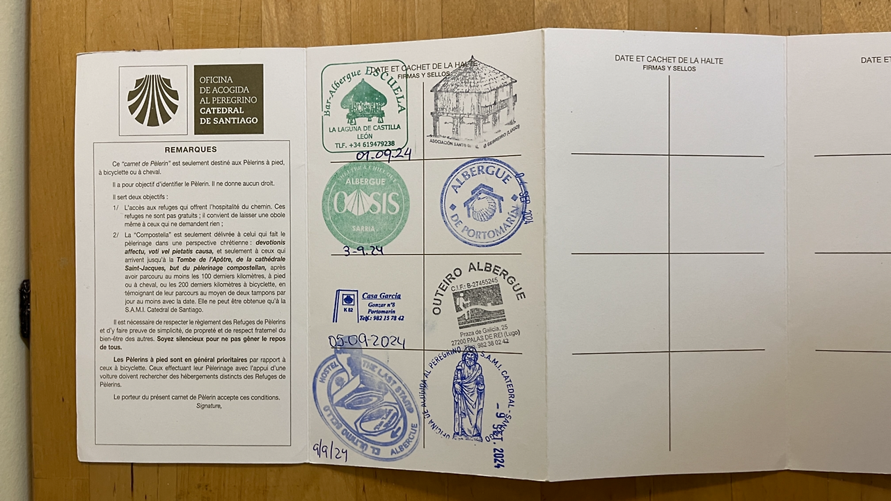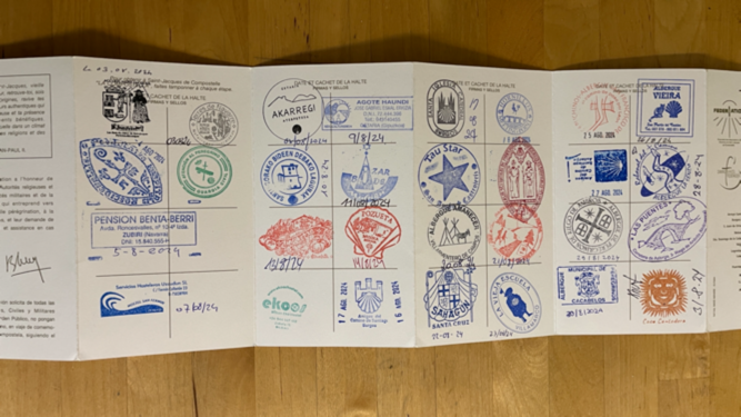 산티아고의 순례자 사무실에서 완주 증서를 받았다. 프랑스길의 시작점인 생장부터 걸어온 흔적인 크레덴시알의 도장들로 채워져 있었고, 사무실 직원분의 간단한 검증을 마치고 증서가 발급되었다. 출발지와 일자 그리고 산티아고 도착 일자까지, 그동안의 여정이 오래도록 기억되도록 해줄 얇은 종이가 한 장 내게 왔다.