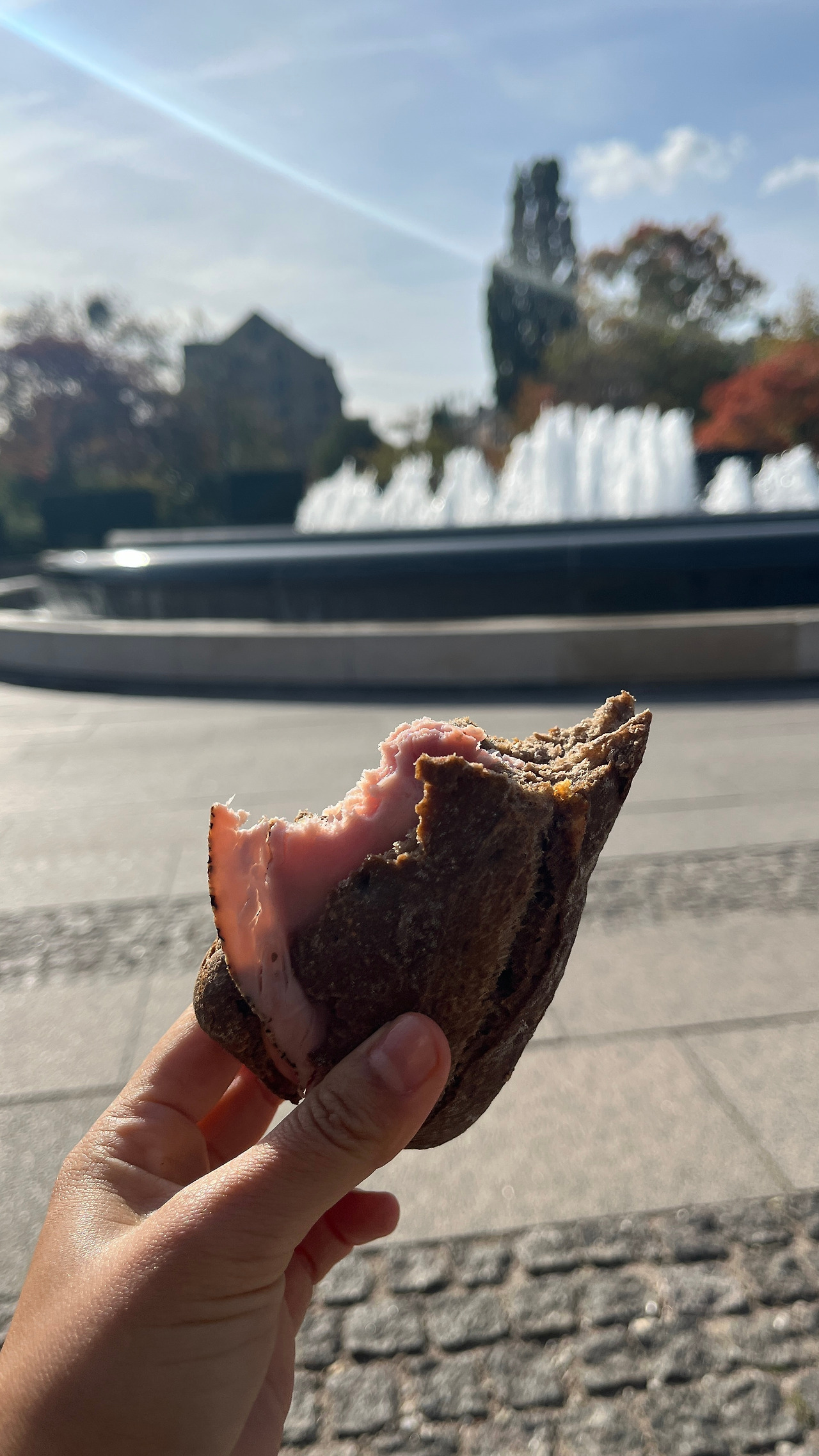 도시의 끝에서 투어가 종료되었다. 함께 걸었던 스페인 부부와 인사를 나누고 가이드에게 감사의 팁을 전한 뒤, 간단히 점심을 먹을 벤치를 찾았다. 추운 날씨에도 시원하게 물을 뿜는 분수 앞에서 따뜻한 햇살을 받으며 챙겨 온 샌드위치를 먹었다. 물가 비싼 덴마크에서 그나마 마트물가는 한국과 비슷했고, 든든한 저녁과 아침, 간식 등을 모두 사도 만원 정도 안에서 해결 할 수 있었다. 점심을 먹고 커피를 마시러 들린 카페에서 카푸치노가 만원 정도였다는 점도 내겐 참 신기하고 재미있는 포인트였다.