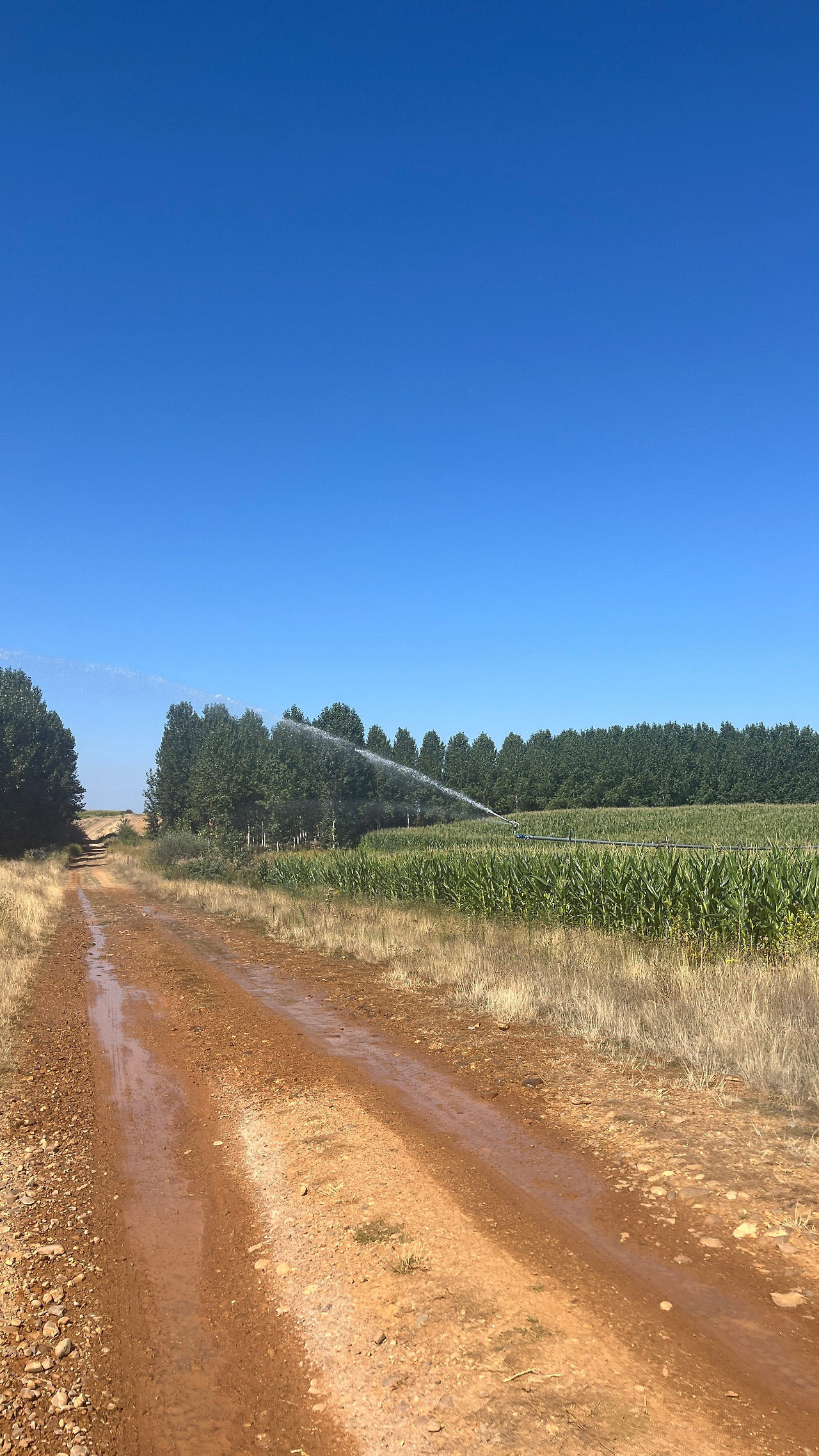 순례길에서 멀리 떨어진 알베르게로 가는 오늘은 아무도 걷지 않는 외딴 시골길을 조금 걸었다. 내내 넓은 밭이 펼쳐졌고, 햇살은 아주 뜨거웠기에 흙바닥에 떨어지는 스프링클러(가 아니라 작물들에게 물을 주기 위한 그것) 물줄기가 오히려 반가웠다.