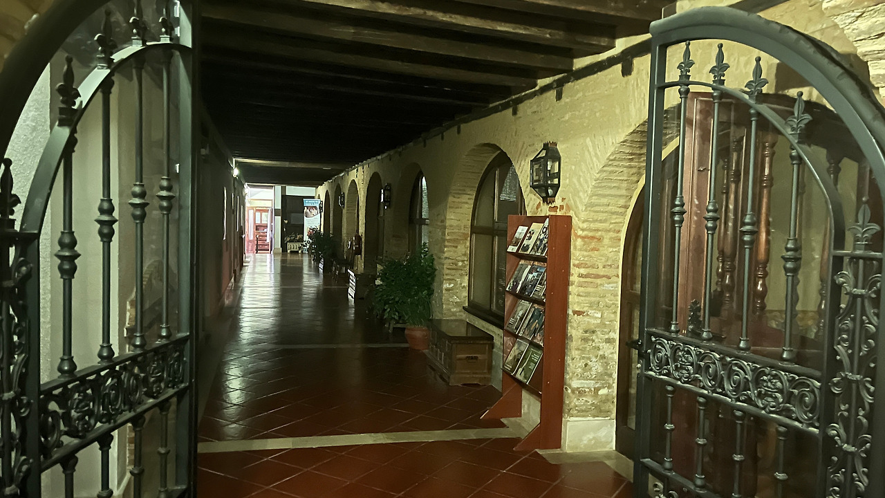 이 멋진 건물에 머물 수 있었음에 감사한 마음이 가득했다. 아쉬운 발걸음을 떼며 사진을 한 장 더 남기고 어두운 길을 나섰다.