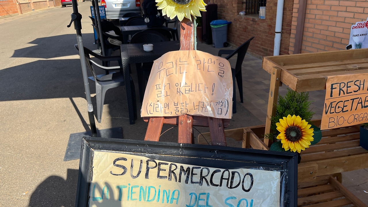 과일부터 라면, 와인까지 작지만 알찬 슈퍼였다. 백색의 빛나는 머릿결을 가진 주인은 환한 미소로 손님들을 맞이해 주었다. 스페인 시골 슈퍼에서 라면을 팔다니, 주인은 한국인에게 관심이 많은 듯 보였다. 내게 밝게 인사하며 자신이 한국인을 좋아한다고 말했다. 그녀는 ‘감사합니다’에, 이어서 자신이 한국어를 하나 더 알고 있다며 ‘행복하세요’라고 말했다. ‘감사합니다’ 다음이 ‘행복하세요’라니, 문득 충격적이지 않을 수 없었다. ’감사합니다 ‘ 다음은 ’안녕하세요 ‘ 아닌가? 지구 반대편의 말을 딱 두 문장 아는데, ‘행복하세요’를 기억하는 그녀는 도대체 어떤 사람일까. 단순히 꽤 많은 수의 한국인 순례자를 대상으로 장사하기 위한 서비스라고 생각할 수 없었다. 그 밝은 미소의 진심과 삶에 대한 에너지가 느껴지는 순간이었다.