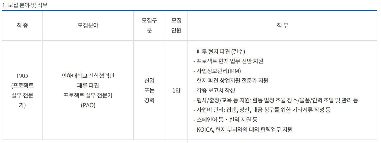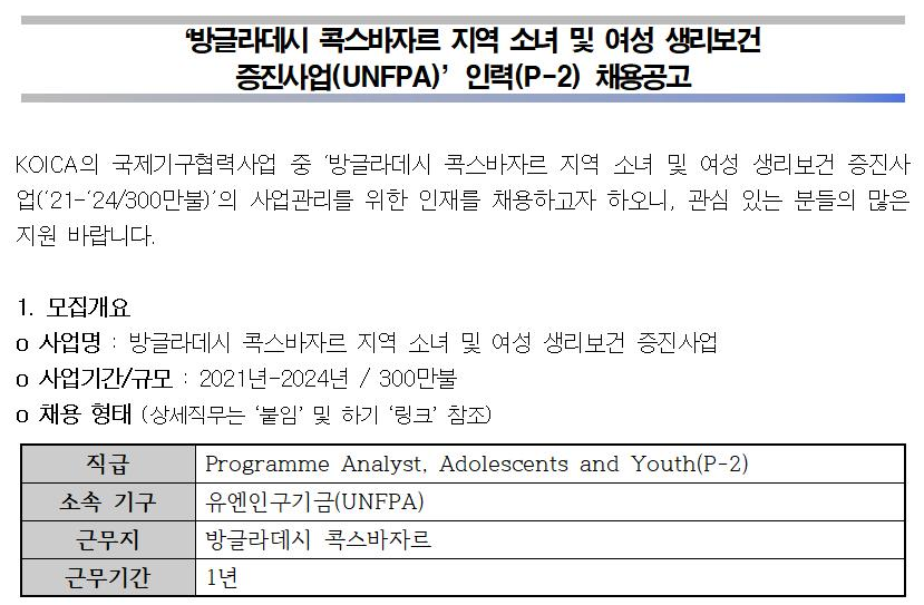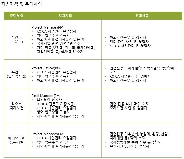 설명을 덧붙이기 위해, 국제개발협력분야에서 NGO, KOICA, 국제기구 등 다른 분야의 채용공고를 가져왔다.