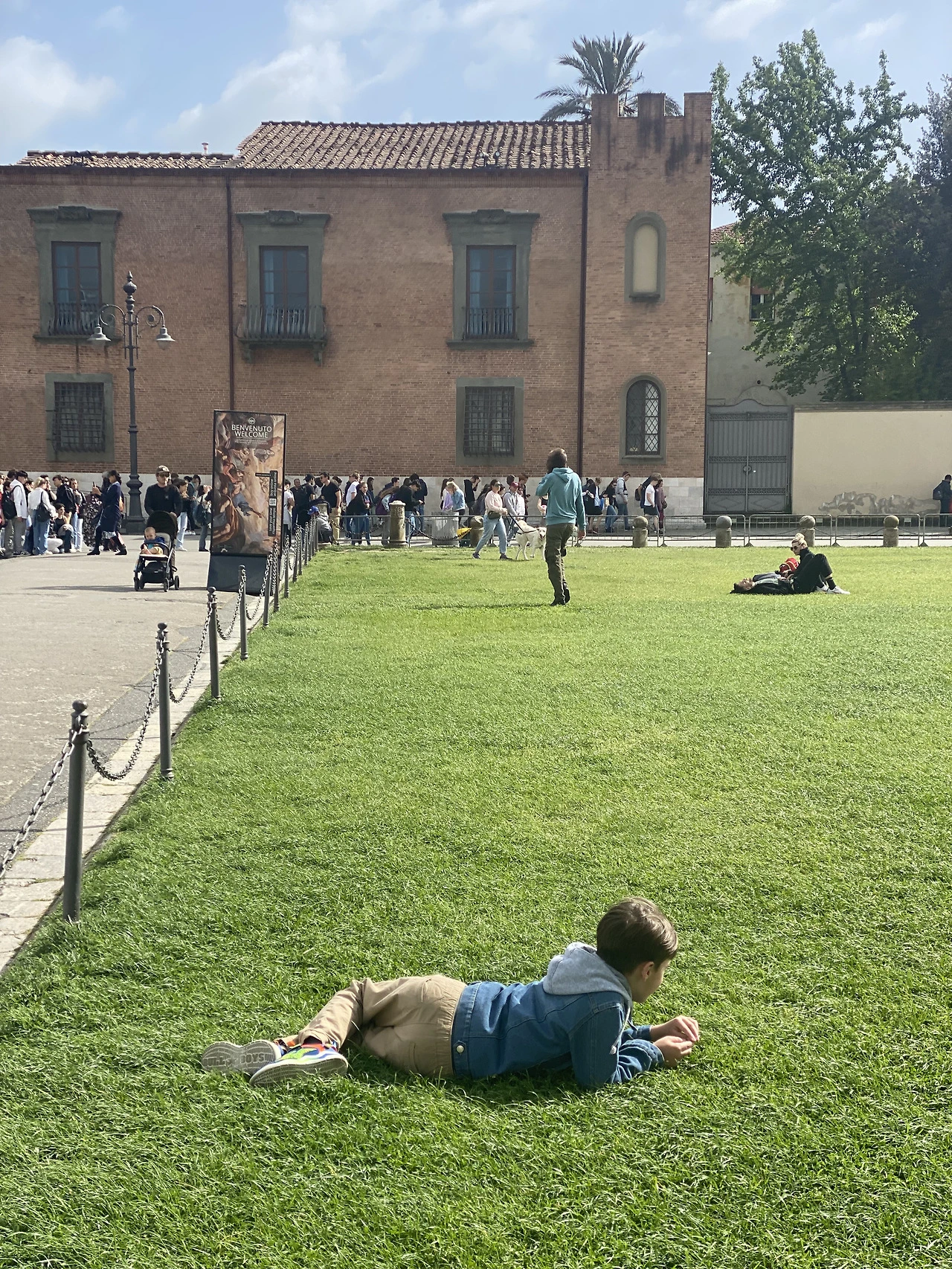 렌터카를 빌린 첫날이었어. 우린 피렌체에서 피사로 달려갔고, 그 유명한 피사의 사탑을 직접 올라가기도 하고 잔디밭에서 여유롭게 시간을 보내는 사람들을 지켜보았어.