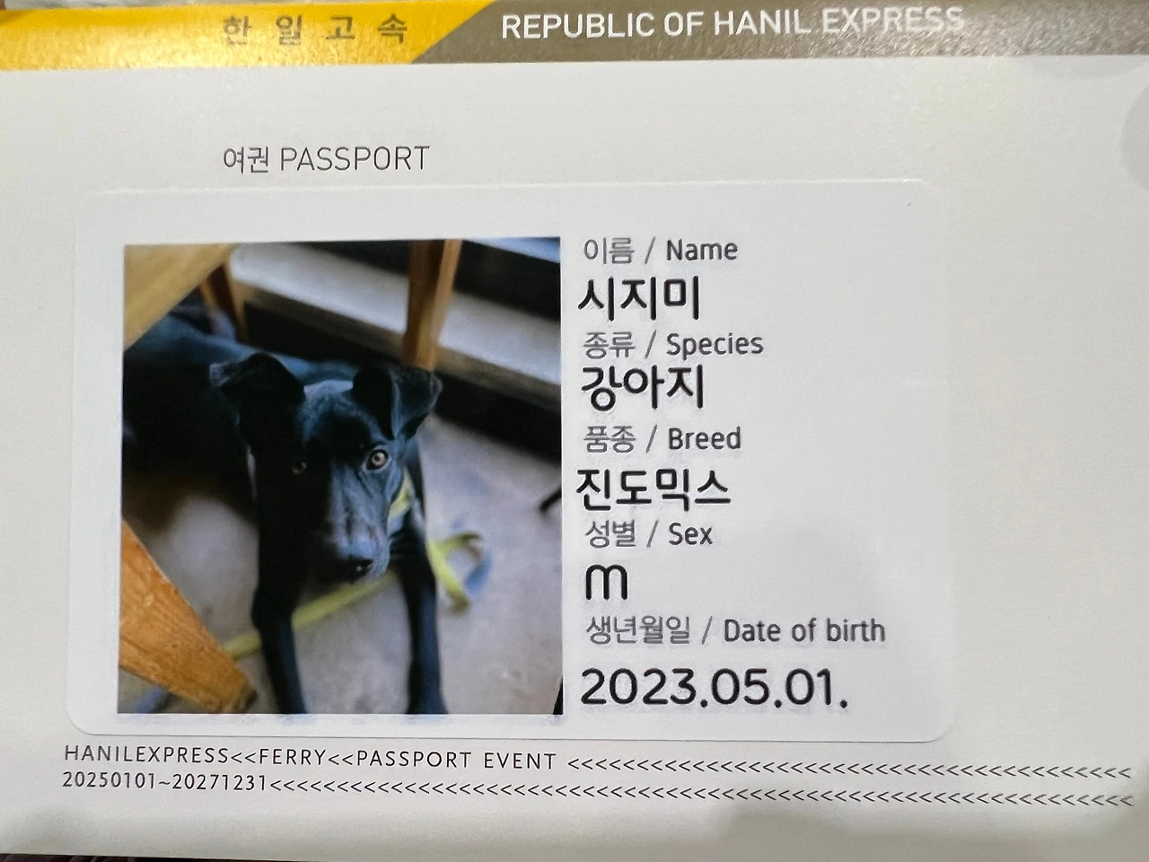 새벽 6시 완도항 도착. 새벽 공기가 좋다. 지미는 검고 큰 강아지라 어딜 가나 눈에 띈다. 이번에는 펫 여권도 만들었다. 이게 뭐라고 자식 첫 여권 만든 부모마음이다.