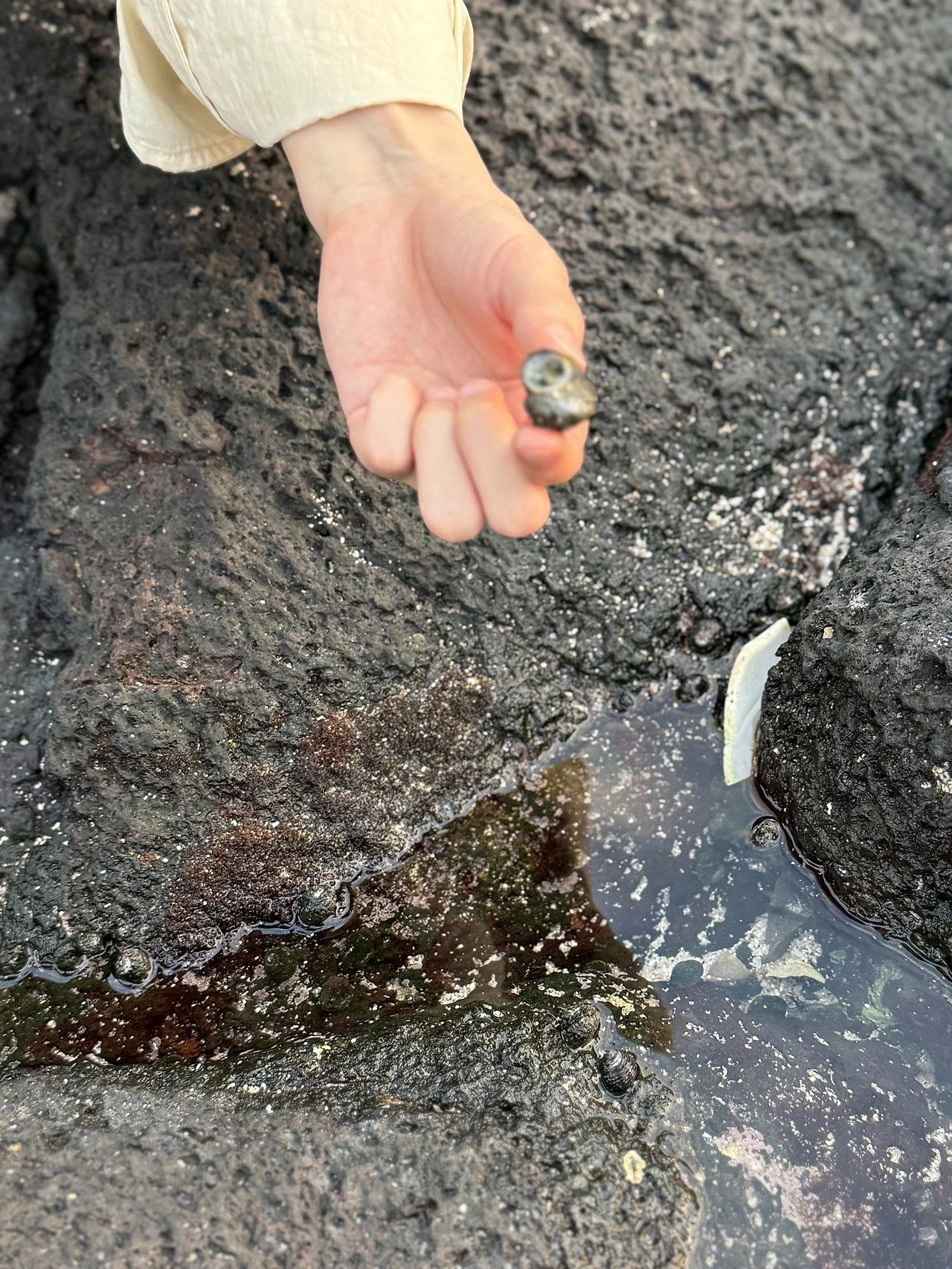 보말죽을 먹고 바다에서 보말을 만난다. 가재와 작은 물고기들이 미쳐 빠르게 빠져나간 썰물에 돌에 갇혀있다. 그래도 다행이야. 다시 이렇게 물이 들어오고 있으니.