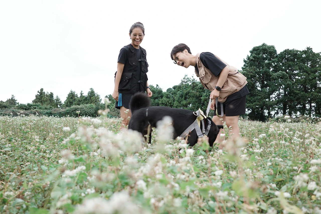 쥰의 새로운 카메라로 메밀꽃과 코스모스밭에서 사진을 찍는다. 해인과는 올해 스냅사진 등 참 많은 사진을 찍었다. 졔와 쥰이 찍어준 감사한 사진들. 사랑스러운 그들의 모습도 남겨준다. 사진도 몰입. 피사체를 향한 사랑이 드러나는 사진이 좋은 사진인가 보다. 지미와 같이 셋이 찍은 사진은 참 귀하다. 제주에서의 기쁜 날들을 기록해 주어 감사.