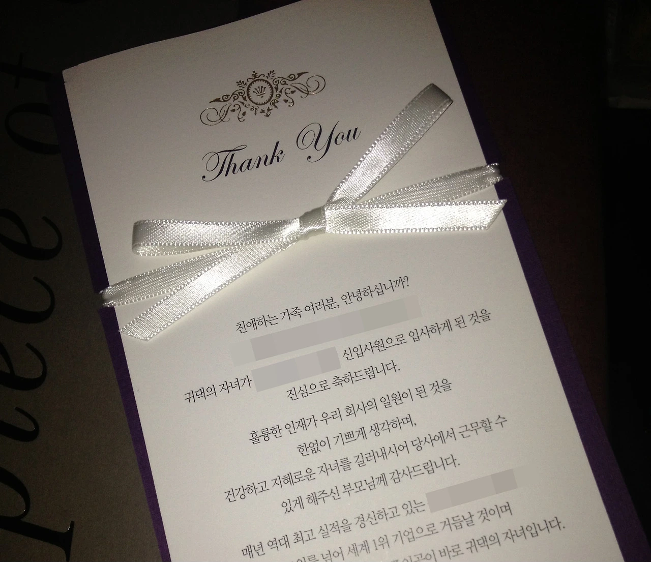 대기업들이 으레 그렇듯, 입사 전 집으로 입사 축하 카드며 와인을 보내주었다.
