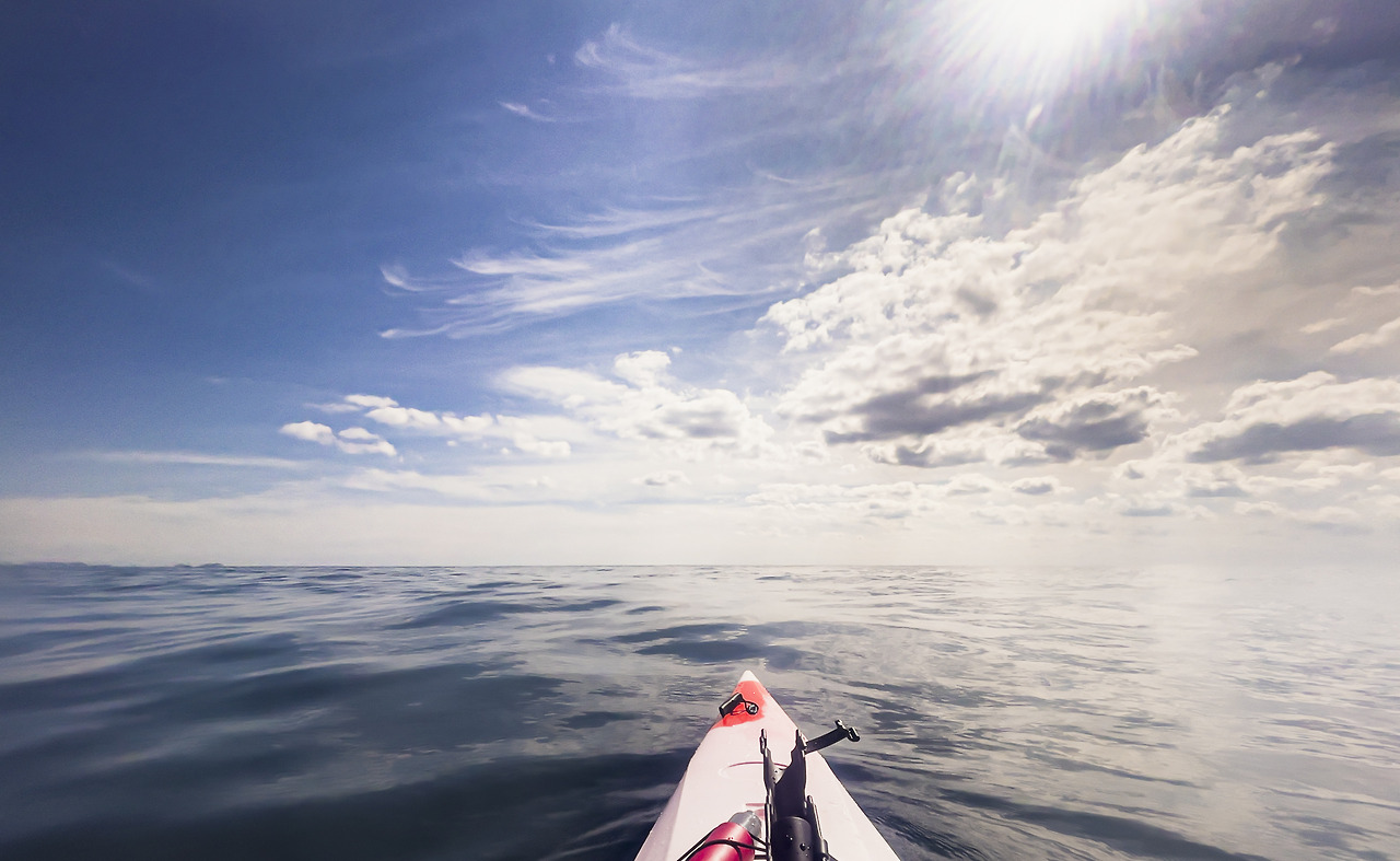 망망대해! 사방 어디로도 육지를 볼 수 없는 큰 바다의 한가운데. 그곳이 내가 꿈꾸는 여행의 목적지가 되었다. 달이 없는 밤, 한 척 배 주변을 가득 채우는 별빛과 고요를 생각한다. 하지만 빠듯한 섬 생활에 당장 요트를 살 수는 없다. 그때, 노를 저어 바다로 나갈 수 있는 작은 배, 카약이 눈에 들어왔다. 잠시 동안 모든 관계로부터 나를 떨어트려 놓고 싶다는 바람, 마련된 길이 아니라 내 마음대로 만드는 길로 가고 싶다는 충동, 낯선 것에 대한 여전한 호기심 같은 감정들을 모아서 작은 카약을 샀다. 아, 하나 더 있다. 대어를 낚아 귀항하는 선장의 꿈!