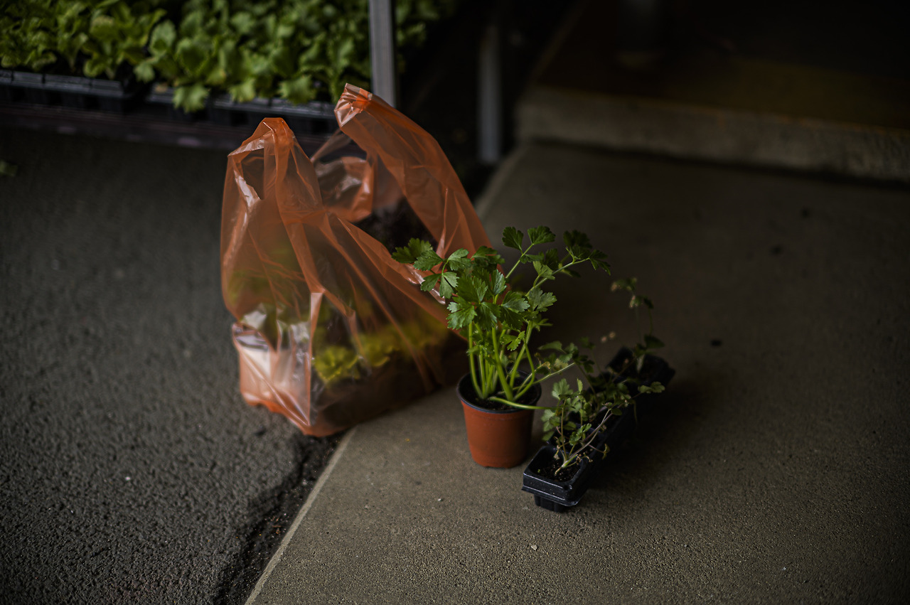 아내는 봄 마당에 심어 먹을 채소 모종 몇 개를 사 왔다.