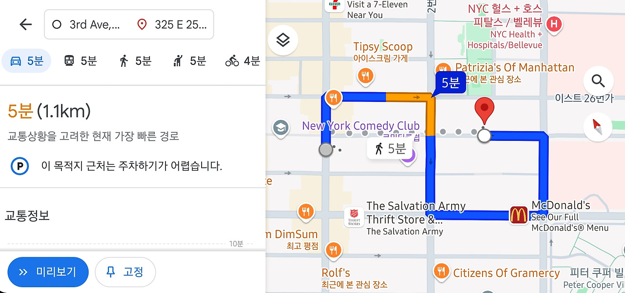 정답! 걸어서 5분이면 가는 200미터 거리지만 차로 가도 5분인 게 함정