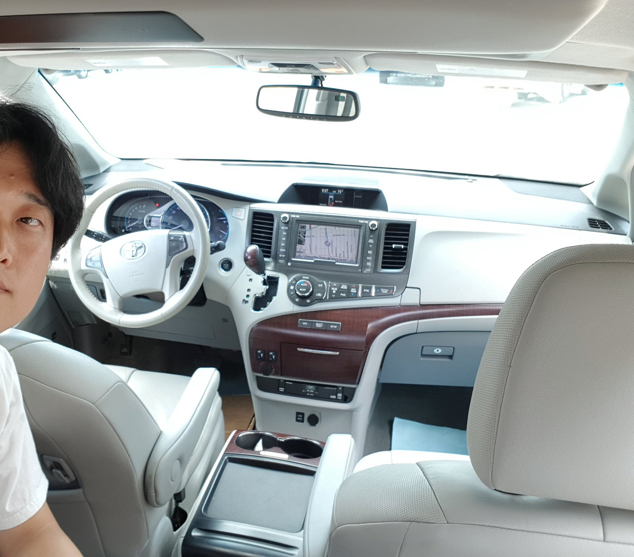 '흰색이어야 한다고 흰색. 화이트. 와잇뜨?' 그랬더니 한 대를 더 보여주는데 드디어 흰색 도요타 시에나가 나왔습니다. 그런데 이게 풀옵인 거죠. 트림도 XLE라서 최고급이고 옵션도 풀옵. 막 썬루프에 전동문짝에 크루즈 기능에 2열에서 보는 DVD 화면도 달려있거든요. 아니 나는 옵션 필요 없다니까!