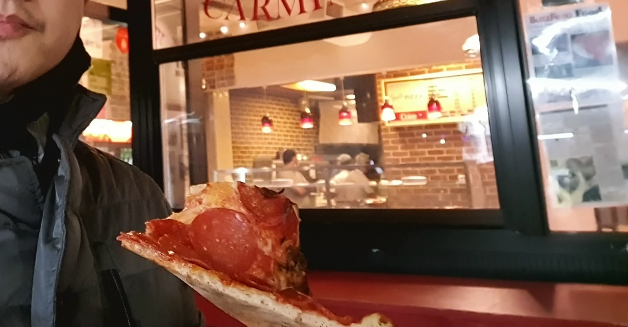 한 번은 그래서 사자마자 먹으면서 빠른 걸음으로 가게에서 멀어졌는데 결국 다 먹고 온 길을 되돌아가서 한 조각 더 샀죠. 정말 바보 같네요. 치즈랑 페퍼로니가 정말 맛있습니다.