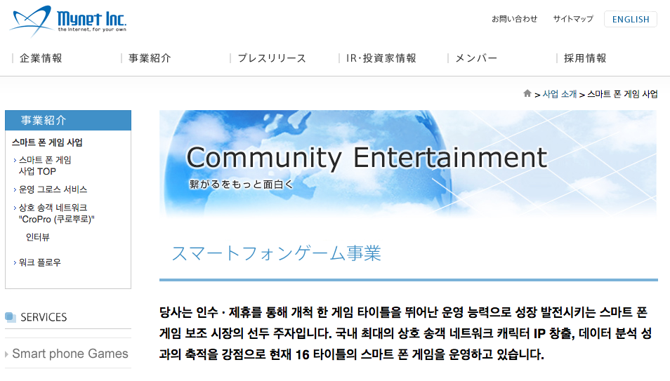 모바일 게임 2차 시장의 대표적인 회사로 '마이넷(Mynet Inc)'가 있습니다. 2015년 12월일본 마더스에 상장하는 등 빠르게 성장하고 있습니다.