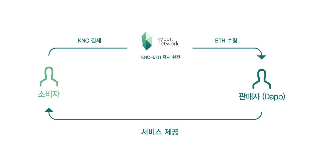 사용자가 비자카드의 비자 네트워크를 이용해 결제하듯, 결제 시스템에 카이버네트워크 거래소를 연동해 어떤 결제를 하건, 판매자가 자신이 원하는 화폐로 결제를 받을 수 있도록 하는 것이죠.