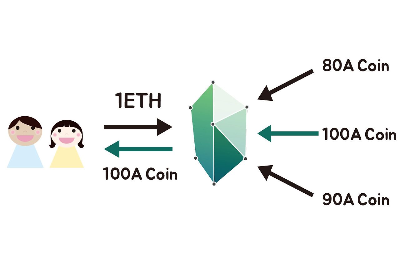 거래가 처리되는 순간 사용자의 지갑에 있던 ETH는 A코인으로 바뀌고, ETH나 A코인은 카이버 네트워크를 전혀 거치지 않고 교환됩니다.