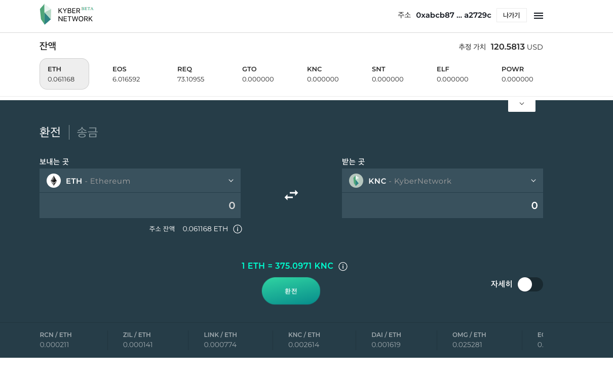 개인 지갑을 가지고 있는 사용자라면 카이버네트워크와 연동해 토큰 환전을 해볼 수 있겠죠? (카이버스왑)