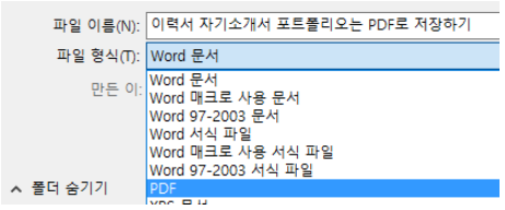 이력서나 자기소개서를 만들었다면, 그걸 ‘완성’하는 행위가 PDF로 변환 버튼이에요. 워드/엑셀로 작성한 후에 F12 버튼을 눌러서 포맷 보시면 PDF가 있어요. 정말 중요한 기능이니 꼭 활용하시길 바랍니다.