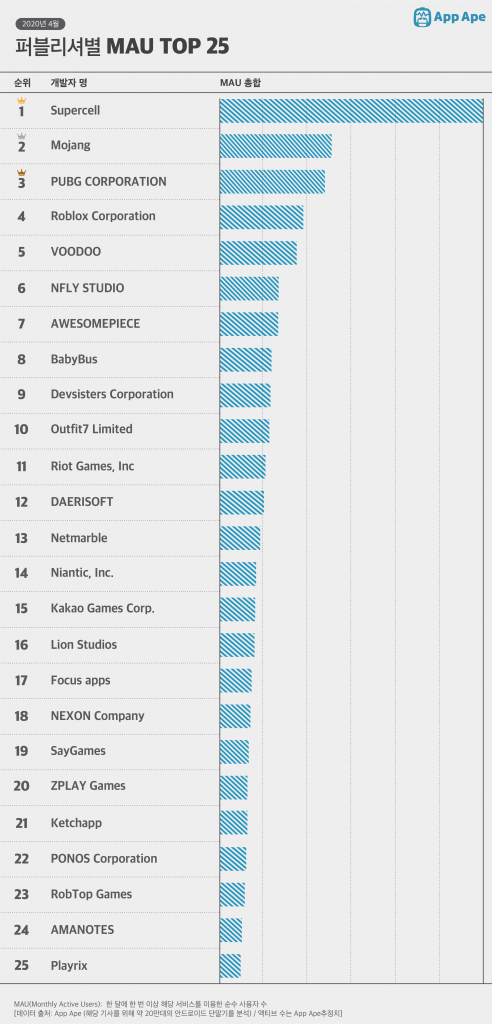 다음으로는 퍼블리셔별 MAU TOP 25 지표를 확인해보겠습니다.