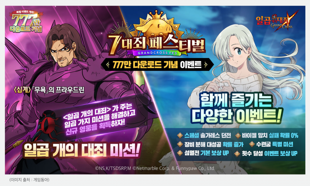 ‘일곱 개의 대죄: GRAND CROSS’ 역시 2020년 4월 3일부터 777만 건 돌파 기념 이벤트를 진행하였습니다.