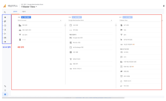 3가지 열은 크게 계정, 속성, 보기의 단위로 나뉘고, 계정 – 속성 – 보기 순으로, 레벨을 가지고 있습니다.