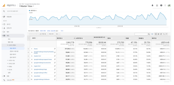 이번에는 [행동] 카테고리로 이동하여, [사이트 콘텐츠] – [모든 페이지]로 이동해봅시다.