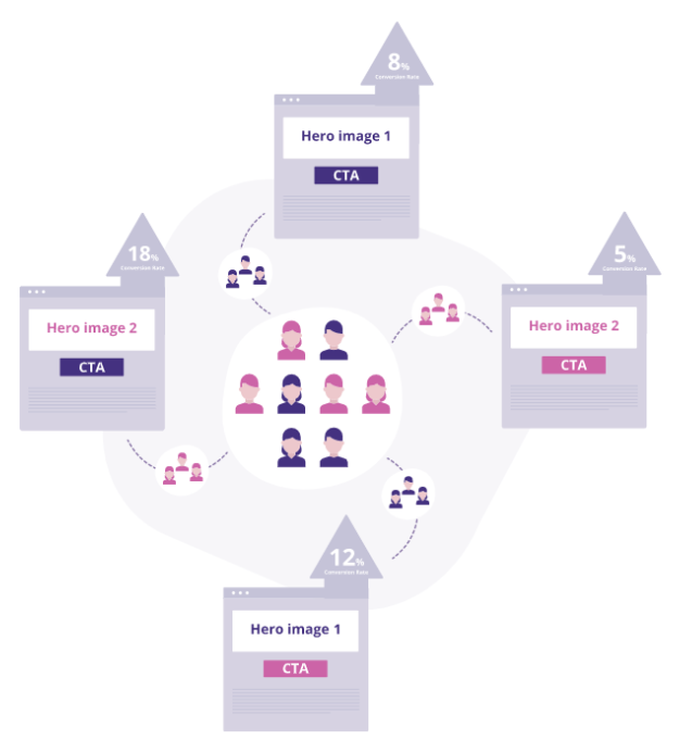 쉽게 설명해서 타겟에게 A 또는 B를 보여주고 더 좋은 반응이 나오는 형식이 무엇인지를 테스트하는 것을 말합니다.