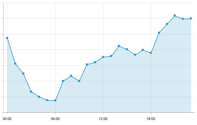 ‘하쿠나 라이브’ 앱의 시간대 별 활성 사용자 추이 그래프입니다. 오전 6시를 기점으로 점점 상승하다가 오후 6시 이후로 높은 활성 사용자 수를 기록하고 있습니다. 아무래도 실시간 소통을 제공하는 서비스다 보니 주요 일과시간이 끝나고 밤 시간대에 많이 접속하는 것으로 보입니다.