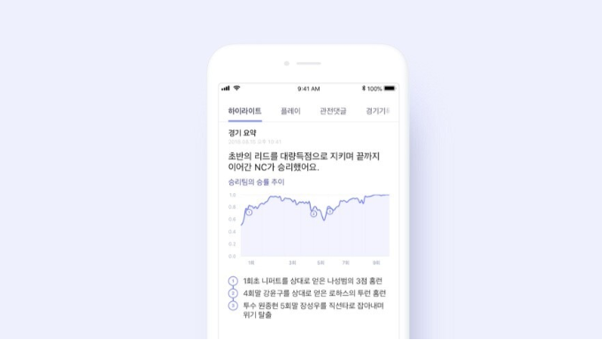 해당 서비스에는 정말 다양한 기능들이 존재하지만, 여기서는 경기의 하이라이트 영상 클립과 요약 기사에 대한 사례를 살펴보면 좋을 듯하다. 보통은 야구 경기가 끝나면 Daum이나 네이버에서 스포츠 뉴스를 찾아볼 때 하이라이트 위주로 찾아보는 경우들이 많은데, 이때 볼 수 있는 하이라이트 영상과, 요약 기사들을 이미 AI가 자동으로 만들어주고 있었다.