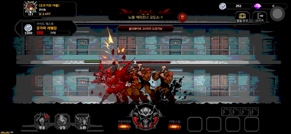 이경: <광전사키우기>를 지키면서 <한마바키>를 반영하는 게 어려웠어요. 무슨 말이냐면, 예를 들어 광전사는 칼을 사용해 공격하는데, 바키는 주먹으로 싸워요. 결국 게임에서 중요한 칼을 빼는 결정을 해야 했어요. 하지만 주먹으로 공격하더라도 <광전사키우기>의 타격감만큼은 살리고 싶었어요. 그래서 연출 파트의 도움을 받아 액션에 많은 신경을 썼어요.