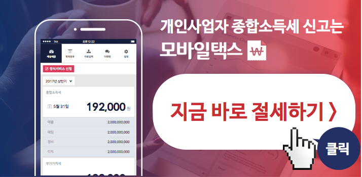 개인사업자를 위한 O2O 종합세무서비스, 모바일택스로 기장을 맡기시면 일반 세무사무실의 절반 비용에 세무전문가가 전담으로 1:1 배정되어 간편하고 깔끔하게 종합소득세 신고준비를 할 수 있습니다. 항시 절세상담을 통해 세금폭탄을 미리 막을 수 있죠. 예상세금까지 미리 확인 가능합니다.