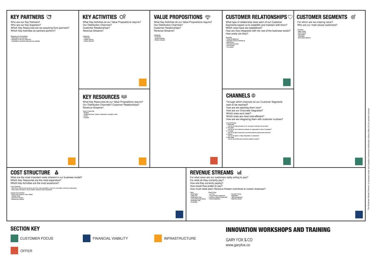 비즈니스 모델 캔버스는 다음과 같은 양식에 따라 각 항목을 작성하여 비즈니스를 체계적으로 설명하고자 합니다. 제 글에서는 비즈니스 모델 캔버스는 9가지 주요 구성요소를 4 가지 비즈니스 영역 구분하고 살펴봅니다.
