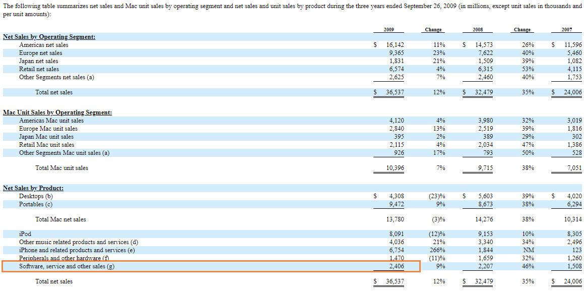 애플 서비스 비중 참고 : https://www.sec.gov/Archives/edgar/data/320193/000119312509214859/d10k.htm