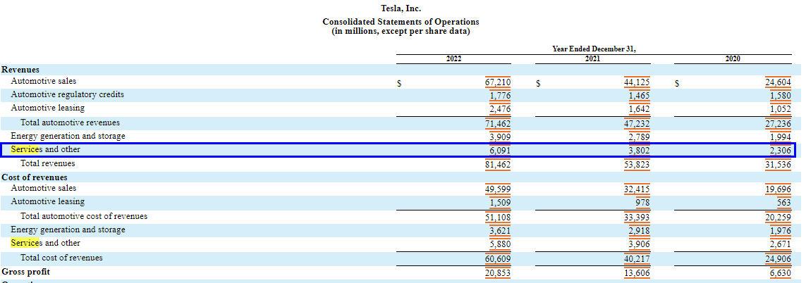 테슬라 서비스 비중 참고 : https://www.sec.gov/ix?doc=/Archives/edgar/data/1318605/000095017023001409/tsla-20221231.htm
