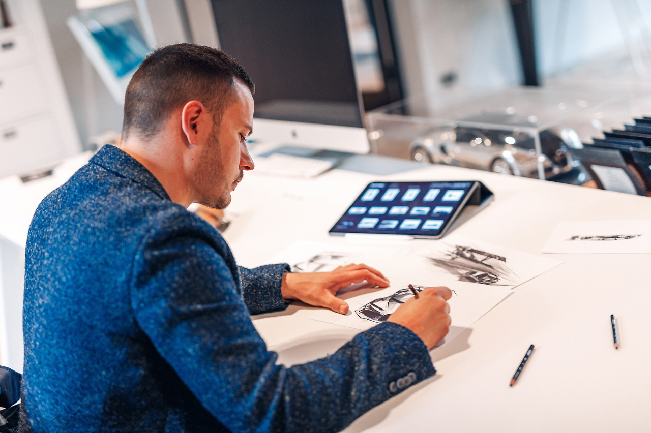 그의 디자인 작업은 완벽한 비율의 사용, 과감한 센터라인 강조와 툭 떨어지는 벨트 라인에 중점을 두었는데, 이는 부가티의 Atalante, Atlantic 모델에 큰 영향을 미쳤다. 또 그는 듀오톤 컬러를 사용하고 빛을 흥미로운 방식으로 반사하도록 디자인했는데, 이것은 지금의 부가티 디자인에도 그대로 활용되고 있다.