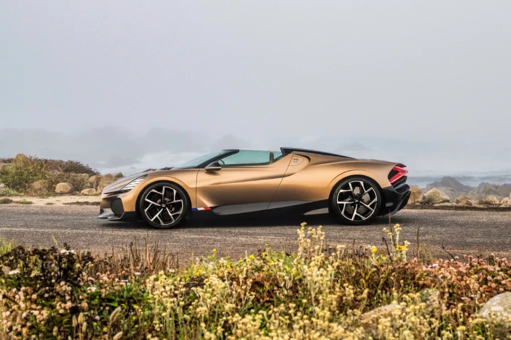 로드스터의 뿌리에 충실한 W16 미스트랄은 역동적이고 민첩하며 반응성이 뛰어난 하이퍼 스포츠카로, 개발팀은 초고성능 경량 복합 소재와 복잡한 구조를 사용해 무게를 최소화하는 동시에 섀시의 강성을 높였다.