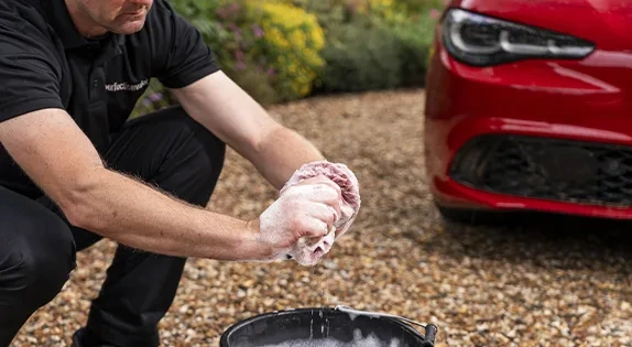 양동이로 세차할 때는 청소용 장갑이나 천을 정기적으로 헹구고 바퀴와 같이 가장 더러운 부분은 마지막까지 남겨둬야 한다.