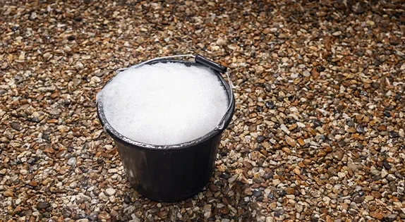 헹굴 때 자갈이 묻지 않게 하려면 버킷 바닥에 자갈 가드를 사용하면 된다. 이렇게 하면 페인트칠을 손상시킬 수 있는 그릿을 재사용하려는 물에서 분리할 수 있게 된다.
