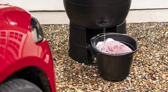 하지만 빗물은 영국의 경우 훨씬 부드럽고 무료이며 쉽게 구할 수 있다. 빗물을 오랜 시간 동안 용기에 모을 수 있다면, 빗물과 함께 떨어질 수 있는 이물질과 오염 물질을 줄이기 위해 필터나 망사 거즈를 장착한 후 세차할 때 사용하면 된다.