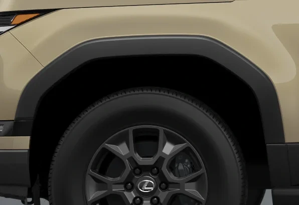 렉서스 GX550에 추가된 ‘L’ 트림에는 프라이버시성과 개방감을 양립시킨 조광 파노라마 루프 및 전동 쉐이드, 대구경 타이어를 강조하는 직선적이고 평행적인 디자인을 채택한 12개 스포크 22인치 단조 알루미늄 휠이 장착된다.