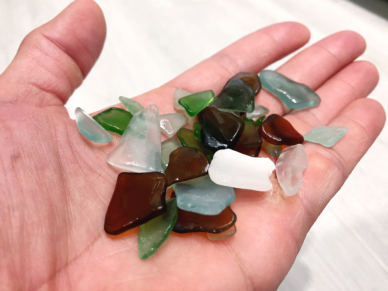반짝이는 자갈이었다. 정확히는 깨진 유리가 오래도록 파도에 깎여서 자갈처럼 둥글어진 것이었다. 처음엔 신경을 쓰지 않아서 몰랐는데 이곳 해변엔 그런 유리로 된 자갈들이 수도 없이 많았다. 우리는 뭐 굉장한 발견이라도 한 것처럼 유리자갈을 주워 모으기 시작했다. 색깔로 보아하니 맥주병, 소주병, 코카콜라, 사이다, 오렌지 또는 파인애플맛 음료수 병 등등 종류도 다양했다. 우리 셋은 엄마가 돌아가서 밥 먹자고 할 때까지 정신없이 채집을 했다. 어느덧 유리자갈은 내 두 손바닥이 가득 찰 만큼이 되었다.