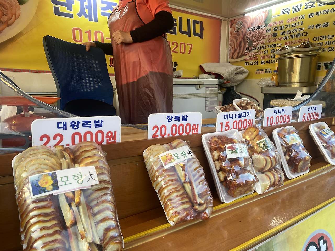 그럼 먼저 맛을 보여드려야지. 그리고 당신은 사각 스테인리스 통에 담긴 자투리 족발 하나를 꺼내 내게 건넸습니다. 차갑게 식었지만 아주 맛이 좋았습니다.