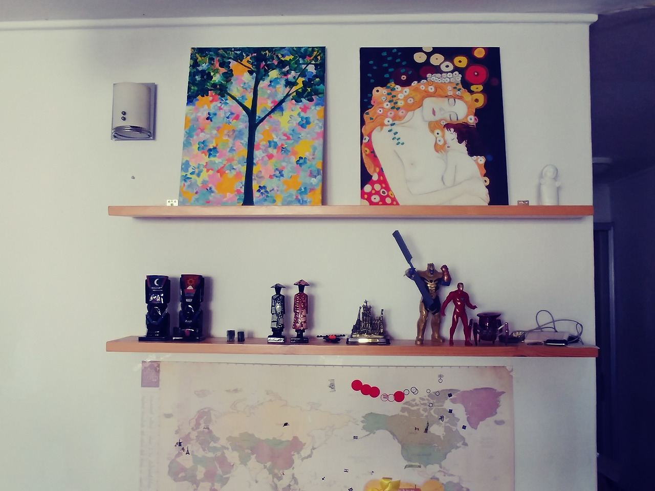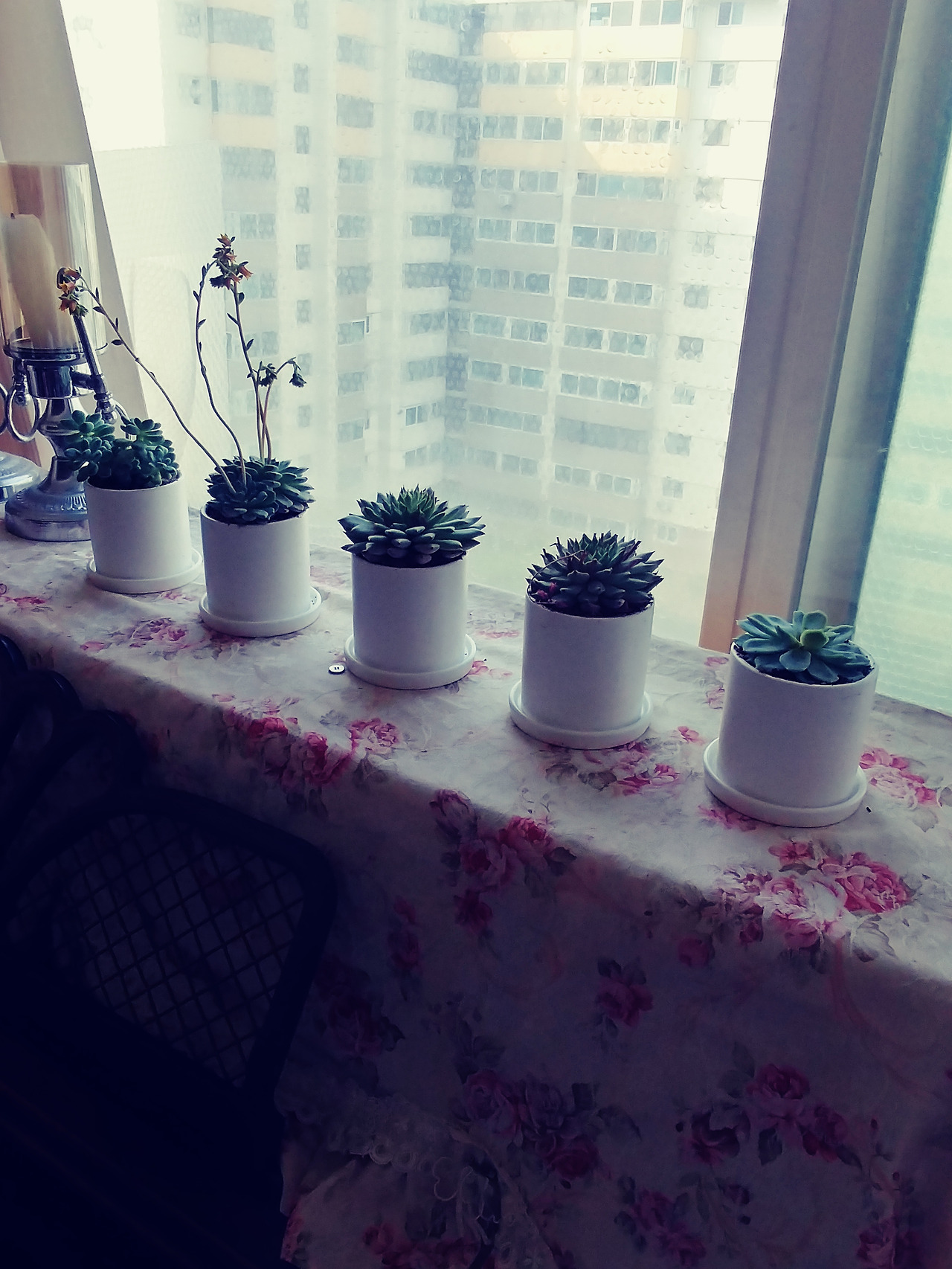 플라스틱 화분에 담긴 다육이들도 하얀 도자기 화분에 옮겨 심어 피아노 위에 올려놓고 방구석에 처박혀 있던 그림들도 거실 선반에 올려놓았다. 말간 얼굴을 내미는 다육이와 나의 그림들을 보고있자니 절로 기분이 좋아졌다. 집이 스트레스를 주는 공간에서 즐거움을 주는 공간으로 대 변신을 하는 순간이었다. 큰 아이도 이사를 안 갔는데 이사 간 것 같다며 좋아한다. 진작에 해줄걸 하는 미안한 마음과 동시에 이번에 여행을 가지 않았으면 몰랐을 공간의 미와 정리 욕구라는 생각도 든다. 비싼 돈 들여 감행한 여행이 또 이렇게 값어치를 하니 흐뭇하다.